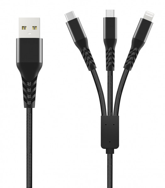 Kabelis Unravel Braided 3in1 USB-A to Lightning / Type-C / Micro USB Black