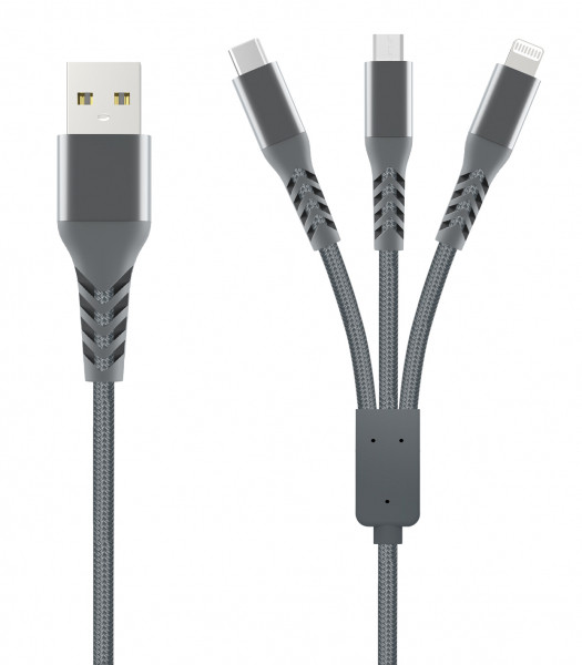 - Kabelis Unravel Braided 3in1 USB-A to Lightning / Type-C / Micro USB Grey